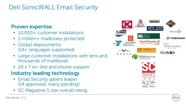 Dell SonicWALL Hosted Email Security is the only hosted solution to integrate Anti-Virus, Dell SonicWALL Time Zero, Hosted Email Security and Encryption Best-in-class email security service offering an optional secure email exchange service Benefits: • Stop spam, phishing, zombie attacks ... Read Full Source