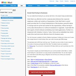 The Plaza You might remember Using Zoho Business, you can create your domain and host your e-mails on Zoho without needing another If the validation was successful, you will be asked to host your e-mails with Zoho. In the Mail hosting dialog box, ... Get Document